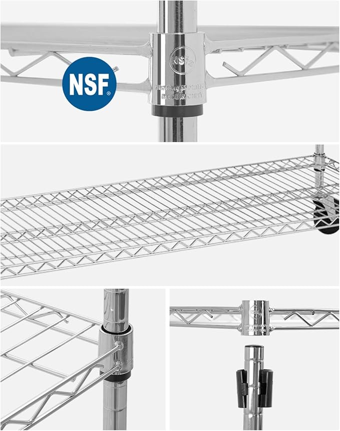 BestOffice | 6-Tier Wire Storage Shelves with Wheels | 18x48x77 | Chrome | Adjustable Racks | Heavy-Duty Metal Shelf, Holds Upto 600 lbs | No-Tool Assembly | Ideal for Home & Garage Shelving