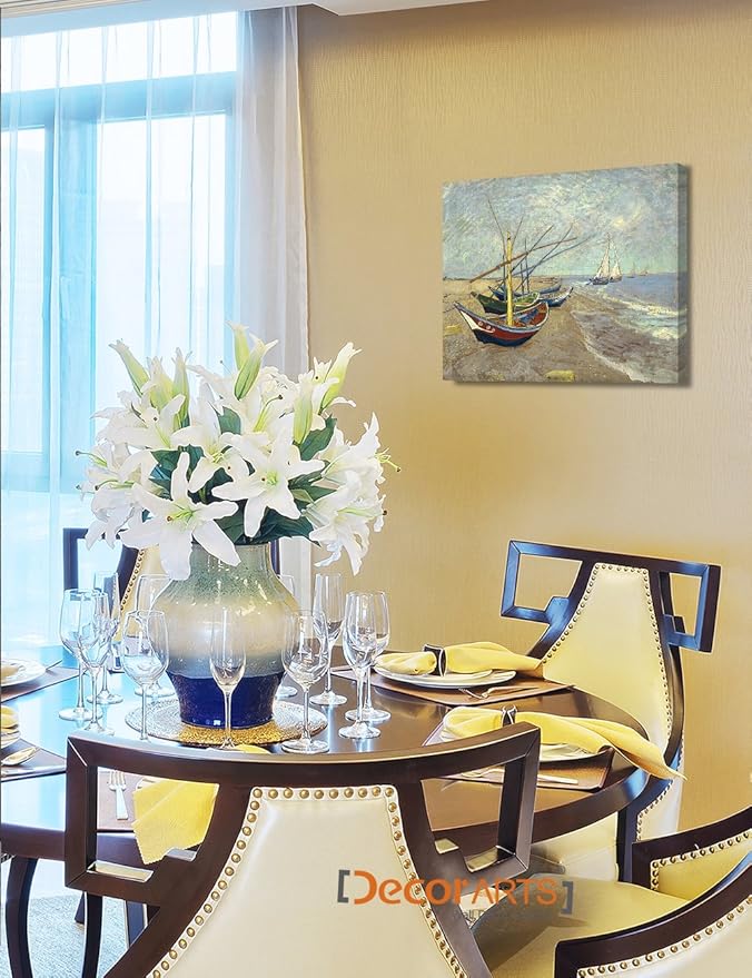 DECORARTS - Boats At Saintes Maire, Vincent Van Gogh Art Reproduction. Giclee Canvas Prints Wall Art for Home Decor 20x16