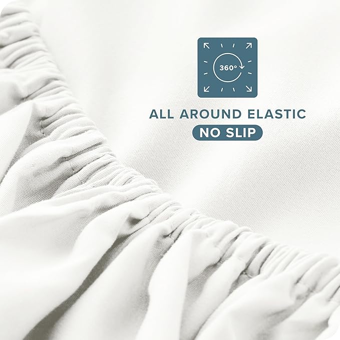 - ALL-AROUND ELASTIC: The fitted sheet has elastic all-around to grip and fit the mattress better and to keep it in place all night long.