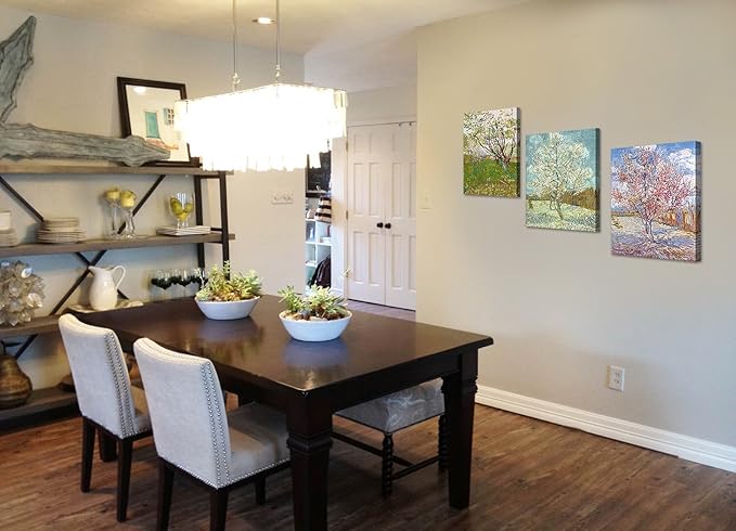 DECORARTS - Triptych (Orchard in Blossom, The pink peach tree, Peach Trees in Blossom), Vincent Van Gogh Art Reproduction. Giclee Canvas Prints Wall Art for Home Decor 20x16, 3pcs/set