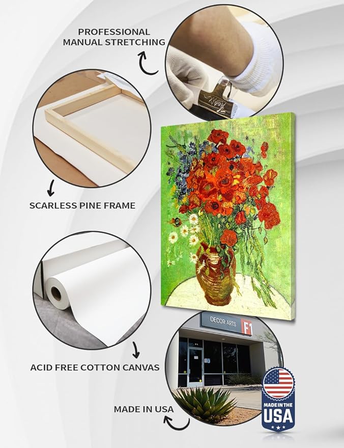 - Archival-Quality, Acid-Free Canvas: Crafted on acid-free cotton canvas, this van Gogh Red Poppies and Daisies reproduction offers museum-quality durability. Preserve the lifelike beauty of van Gogh wall art for years to come with this van gogh decor.