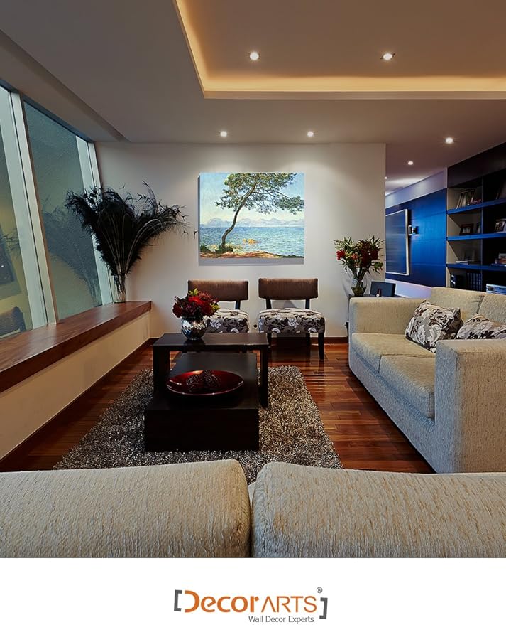 - Nature Framed in Color - A lone pine leans gracefully over the Mediterranean, its greens and blues evoking calm, freshness, and artistic charm that brighten your home decor.