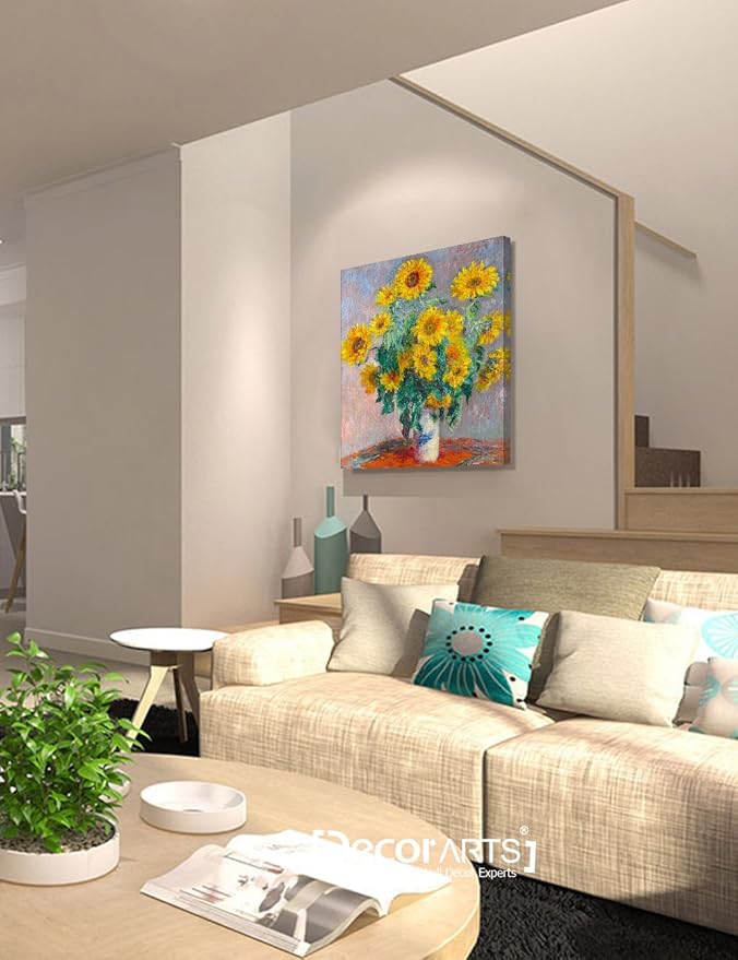 DECORARTS - Monet Sunflowers, Claude Monet Art Reproduction. Giclee Canvas Prints Wall Art for Home Decor 24x20