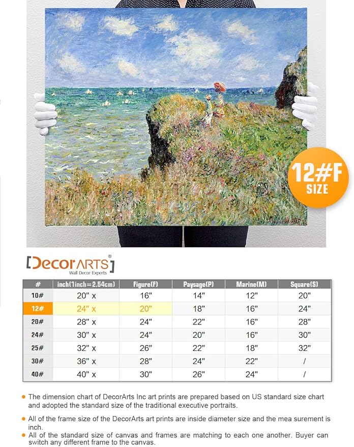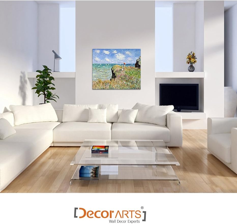 DECORARTS - The Cliff Walk At Pourville, Claude Monet Art Reproduction. Giclee Canvas Prints Wall Art for Home Decor 24x20