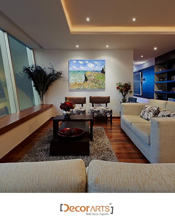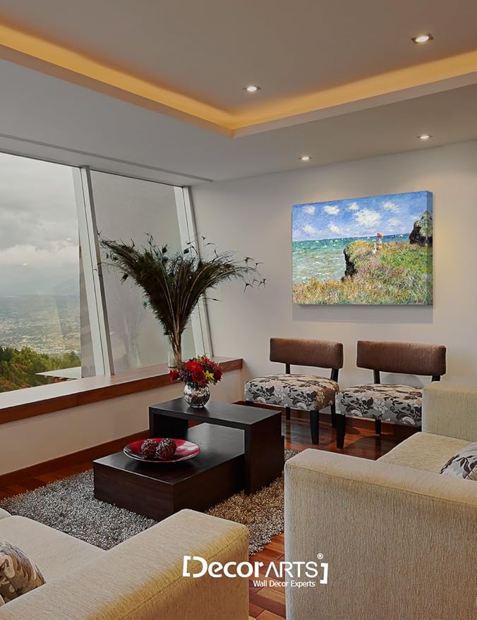 DECORARTS - The Cliff Walk At Pourville, Claude Monet Art Reproduction. Giclee Canvas Prints Wall Art for Home Decor 30x24