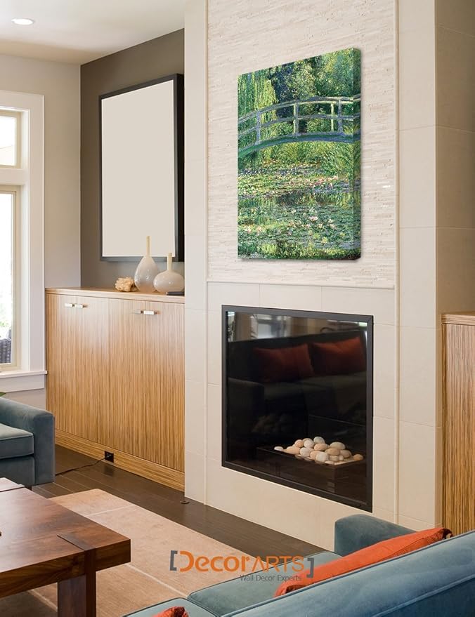 - Light and Reflection - The graceful bridge over water lilies captures harmony between nature and art, bringing calm, color, and timeless elegance to your home decor.