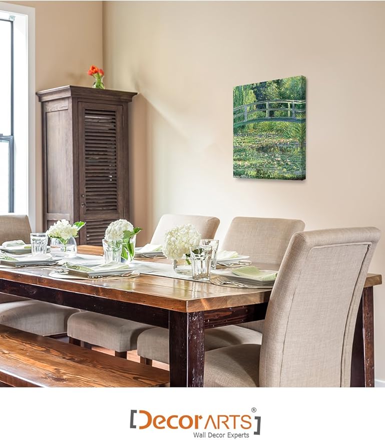 - Light and Reflection - The graceful bridge over water lilies captures harmony between nature and art, bringing calm, color, and timeless elegance to your home decor.