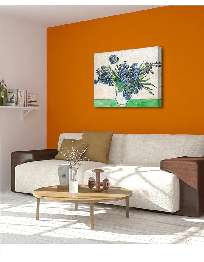 - Vase with Irises, 1889 by Vincent Van Gogh reproduction Museum-quality pieces printed on archival acid free canvas with today's best technology. Gallery Wrap (Mirrored Sides): Entire image shows on the face of the canvas - not around to the sides. Copy the outer edges of image to produce a mirrored effect.