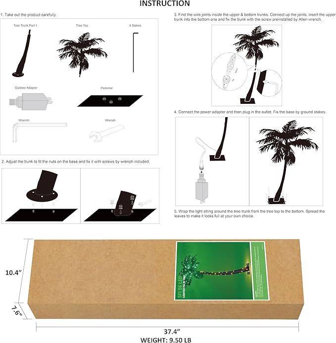 - Perfect Height and UL Adapter: The palm tree stands at 5 feet tall, making it an ideal size for both indoor and outdoor use. It comes with a 16-foot lead wire and a 24V UL adapter, providing a low-voltage and safer power supply