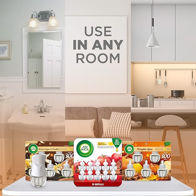 Air Wick Plug in Scented Oil Refill, Apple Cinnamon Medley, 5ct, Air Freshener, Essential Oils