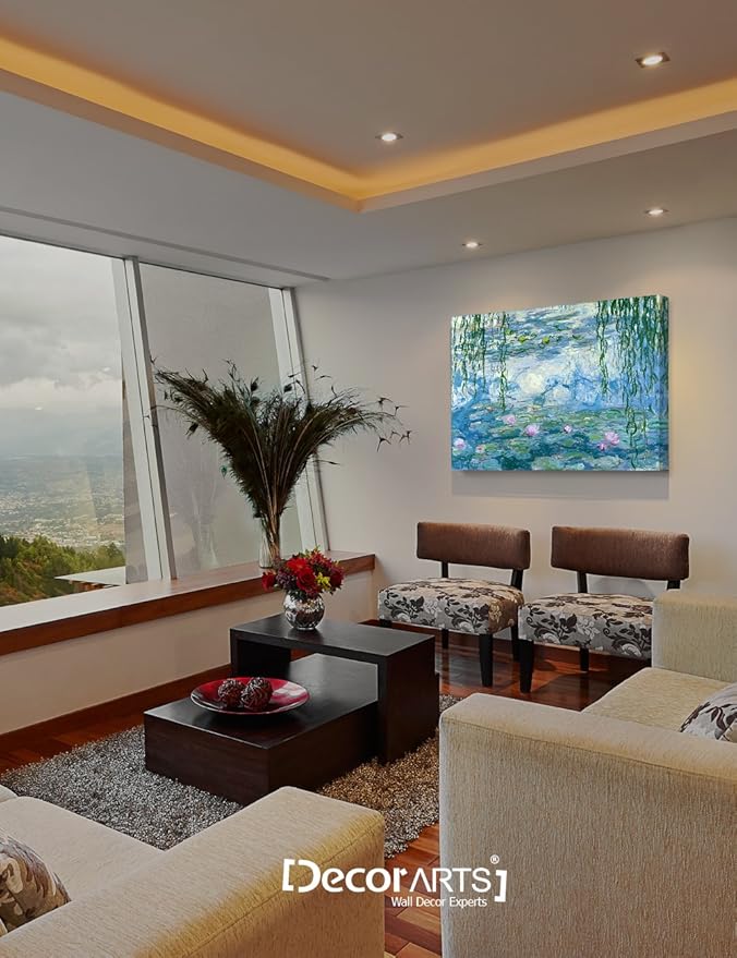 - Monet's Water Garden - Claude Monet Water Lilies with Willows captures shimmering reflections and soft blossoms, turning your wall into a tranquil retreat of impressionist beauty.