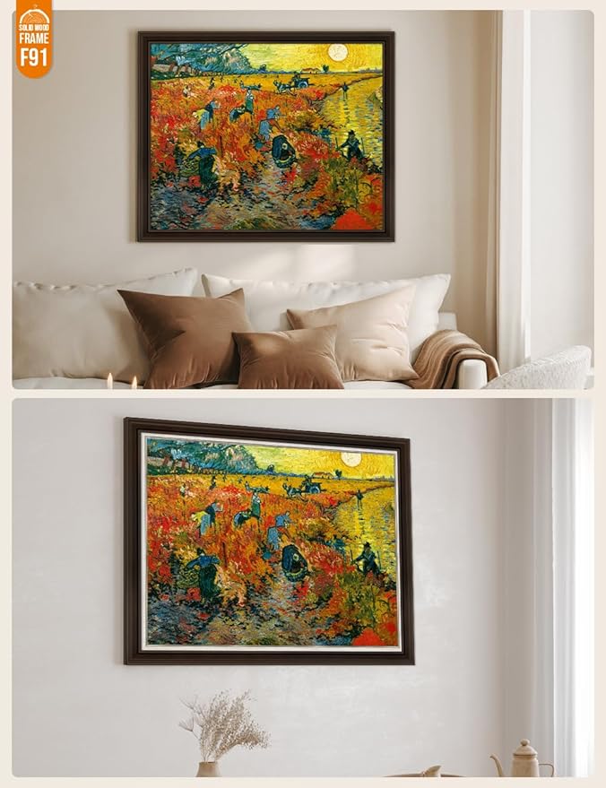 DECORARTS - The Red Vineyards, Vincent Van Gogh Art Reproduction. Acid Free Cotton Canvas Giclee Print w/Bronze Frame&Mat for Wall Decor.