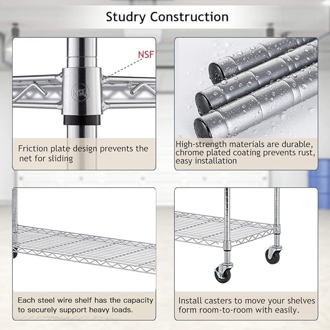 - ADJUSTABLE DESIGN FOR FLEXIBILITY: Customize shelf spacing to fit tall, bulky, or oddly shaped items, perfect for adapting your wire shelf to evolving storage and organization needs.