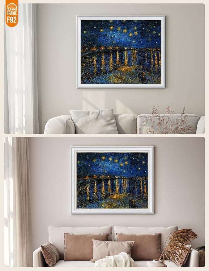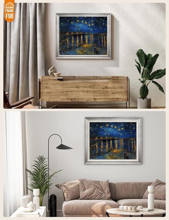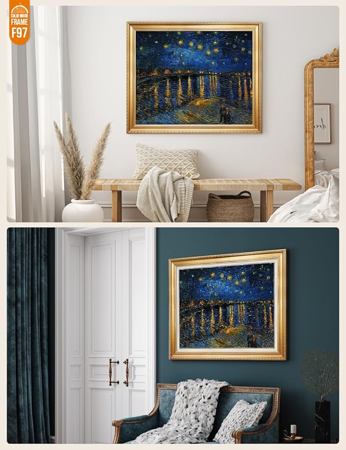 DECORARTS - Starry Night Over The Rhone, Vincent Van Gogh Art Reproduction. Acid Free Cotton Canvas Giclee Print w/Bronze Frame&Mat for Wall Decor.