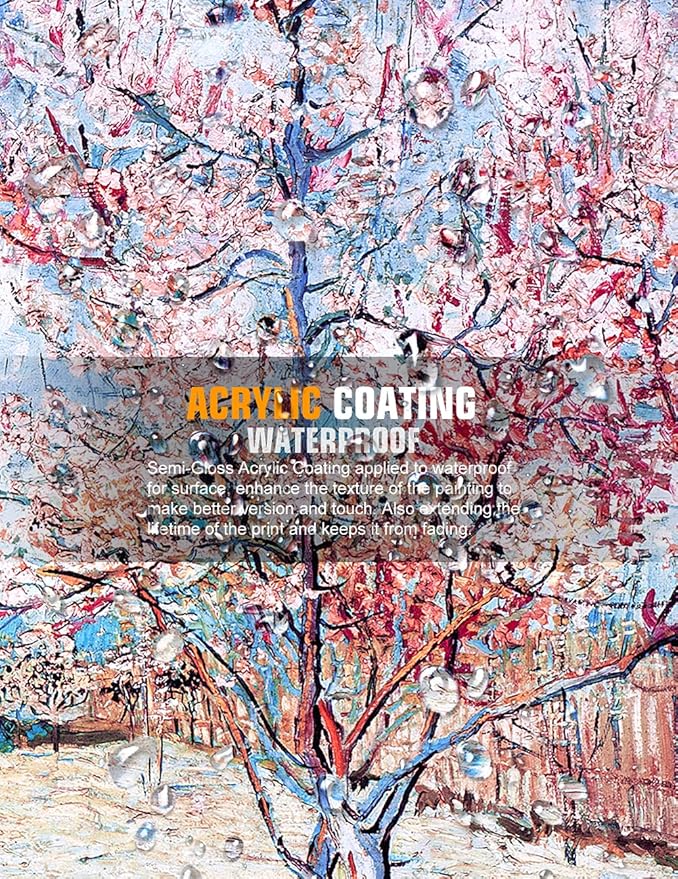 - Semi-Gloss Acrylic Coating applied to waterproof for surface, enhance the texture of the painting to make better version and touch. Also extending the lifetime of the print and keeps it from fading.Please note that actual colors may vary slightly due to monitor differences.
