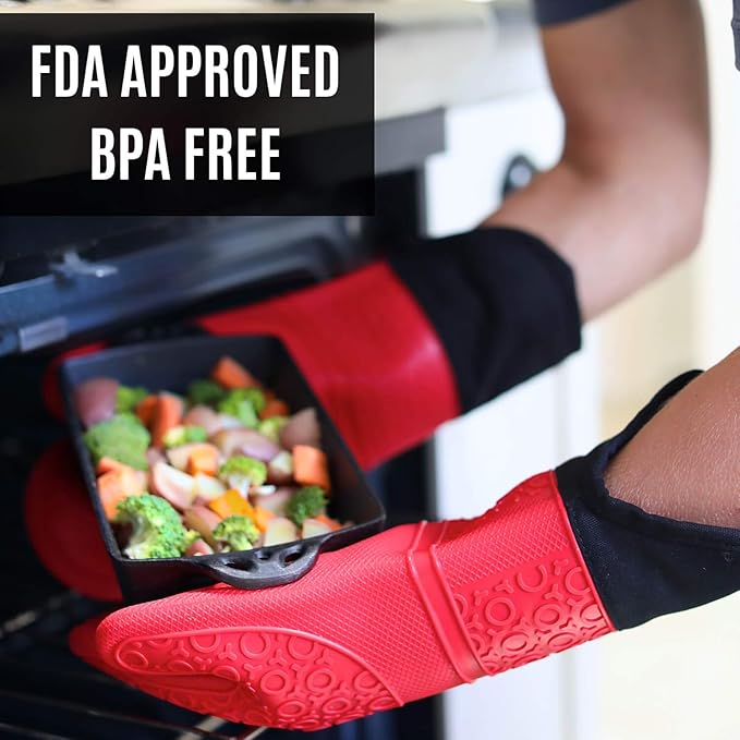 - Heavy-Duty Durability – These gloves and potholders are not only heat resistant, they’re comfortable, flexible, and offer long-lasting, food-grade safe versatility.