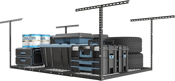 FLEXIMOUNTS 4x6 Overhead Garage Storage Adjustable Ceiling Rack 72" Length x 48" Width x 40" Height, 450lbs Weight Capacity, Black