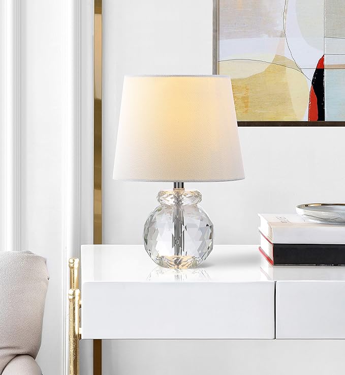 SAFAVIEH Lighting Collection Eunice Modern Glam Clear Crystal 13-inch Bedroom Living Room Home Office Desk Nightstand Round Table Lamp (LED Bulb Included)