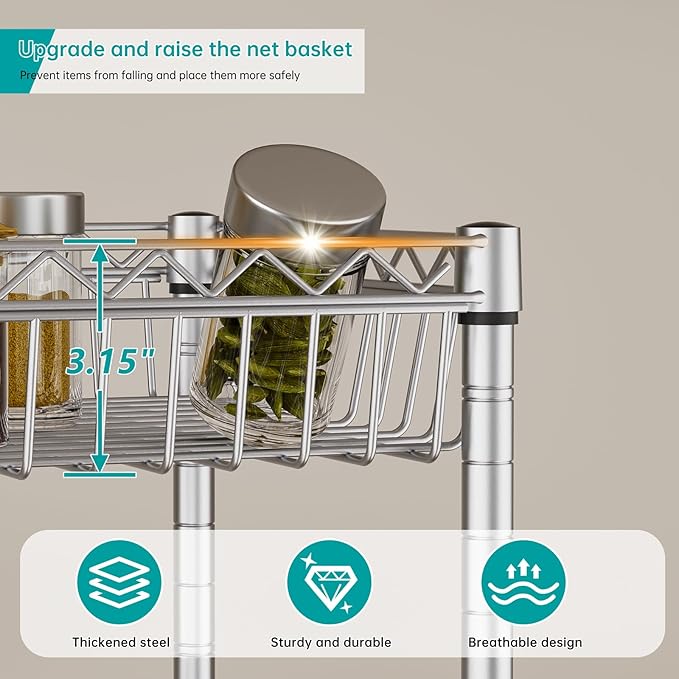 - Narrow Wire Shelving: The length and width of the shelf are only 13.5 inches, saving space without occupying area, can adapt to narrow spaces, and very suitable for closets, kitchens, garages, laundry rooms, apartments, and even offices.