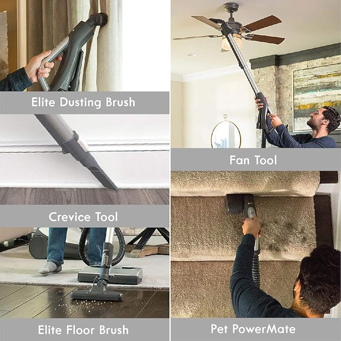 Kenmore Elite 21814 Pet Friendly CrossOver Lightweight Bagged HEPA Canister Vacuum with Pet PowerMate, Extended Telescoping Wand, Retractable Cord, 2 Floor Nozzles, and 4 Cleaning Tools-Silver/Gray