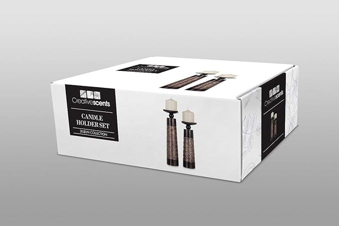 Creative Scents Dublin Brown Pillar Candle Holder Set of 2 - Home Decor Aesthetic, Coffee Table Decor Mantel Centerpieces Table Decorations, Living Room Decor or Dining Tabletop Decor -Gift Packaged-