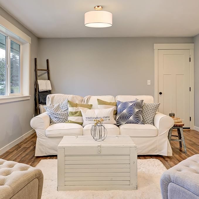 - Glow Anywhere: With its unique fabric drum shade, our 18 x 12.5 inch drum light fixture gently softens the emitted light, providing gentle, eye-friendly illumination in your bedroom, living room, dining room, kitchen, or hallway