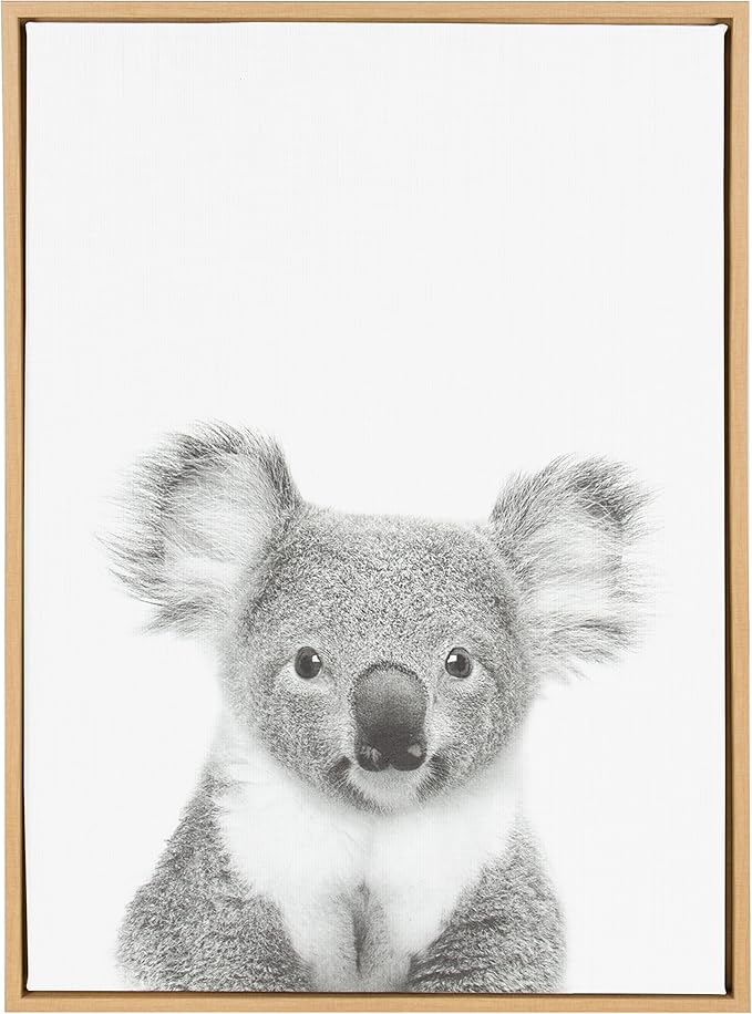Kate and Laurel Sylvie Koala Black and White Animal Portrait Framed Canvas Wall Art, 23x33 Natural