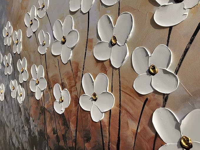 Yihui Arts Hand Painted Texture Large Oil Painting on Canvas Flower Wall Art for Living Room Decor Contemporary Artwork Framed Ready to Hang