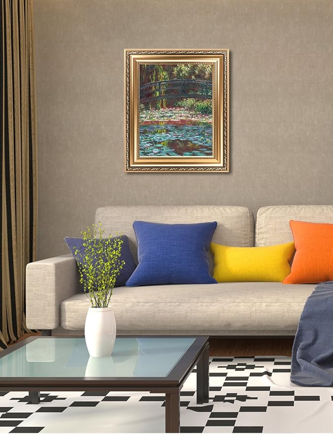 - Elegant Framed Finish - 16x20" Monet canvas presented in an ornate F85 gold frame, finished size 22x26" with velvet-like backing. Ready to hang with included kit of gloves, level, and screws.