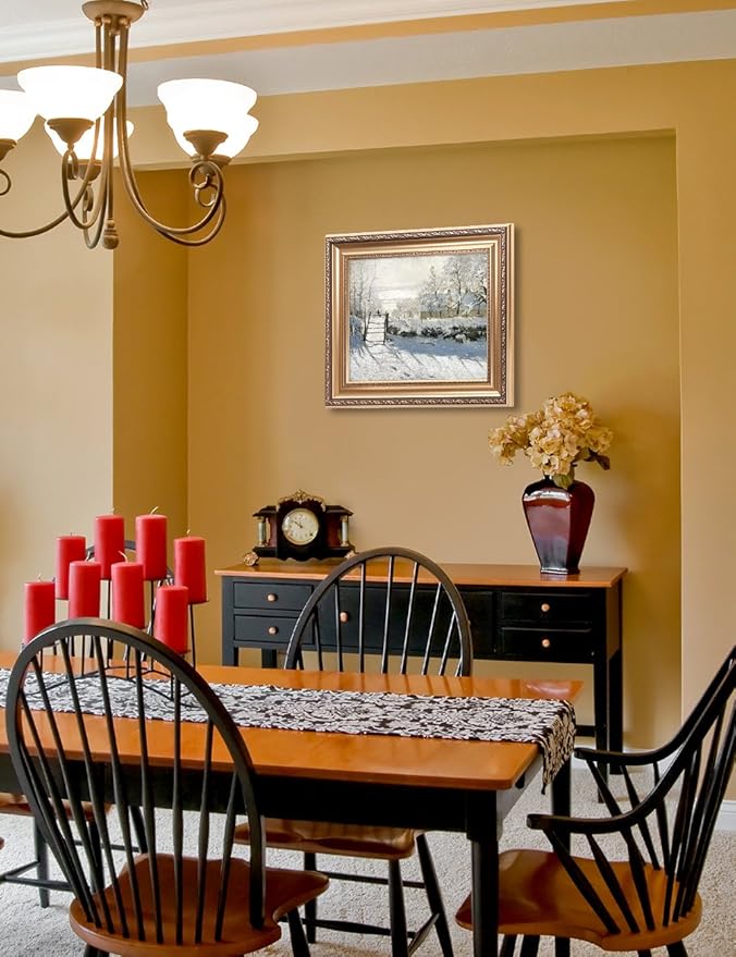 - Elegant Framed Finish - 20x16" Monet canvas presented in an ornate F85 gold frame, finished size 26x22" with velvet-like backing. Ready to hang with included kit of gloves, level, and screws.