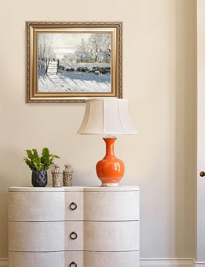 DECORARTS - The Magpie by Claude Monet. Classic Art Reproduction, Giclee Print on Canvas. Ready to Hang Framed Wall Art for Wall Decor. Total Size w/Frame: 26x22
