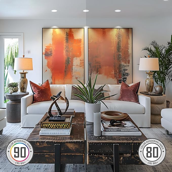 - CRI90 & Dimmable: The 6 inch slim recessed lighting not only offers an dimming range from a cozy 5% to vibrant 100%, but also incorporates a high CRI90. These lights ensure that your space is illuminated with true and vivid colors, enhancing the overall ambiance