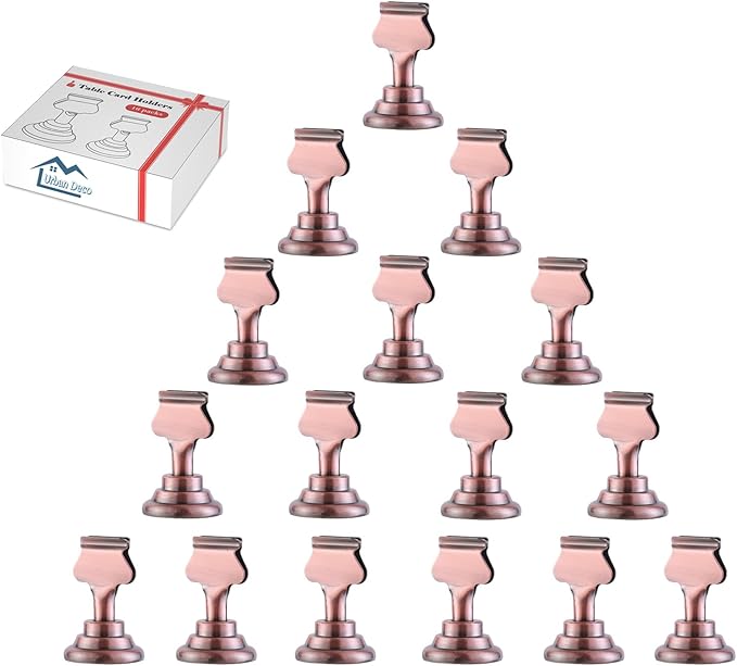 Urban Deco 16PK Table Number & Place Card Holders - 1.7 Inch Steel Holders for Photos, Food Signs, Memo Notes, Weddings, Restaurants, Birthdays (Copper)