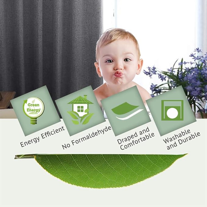 - INNOVATED MATERIAL: These casual linen draperies are crafted from rich linen like fabric (100% polyester), added with 100% blackout lining, draped and soft, block the wind and reduce the noise. Lab test shows these awesome curtain panels are environmental and vinyl free