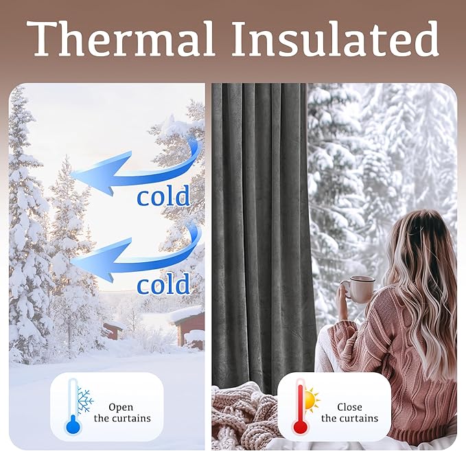 - SUPERIOR VELVET MATERIAL: Our curtains are made of 300 GSM high-quality velvet fabric, featuring an extremely soft touch and heavy vertical sense, as well as vibrant and long-lasting colors that are resistant to fading. Additionally, due to its high density, it is relatively dirt-resistant. Perfect for bedroom, living room, dining room, bathroom, laundry, playroom...