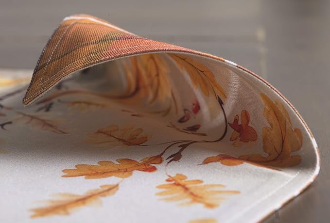 Maison d' Hermine Placemats Set of 4 100% Cotton Washable Cloth Place Mats, Reusable Table Mats for Kitchen Dining Decoration, Party, Wedding, Restaurant (Oak Leaves, 13" x 19")