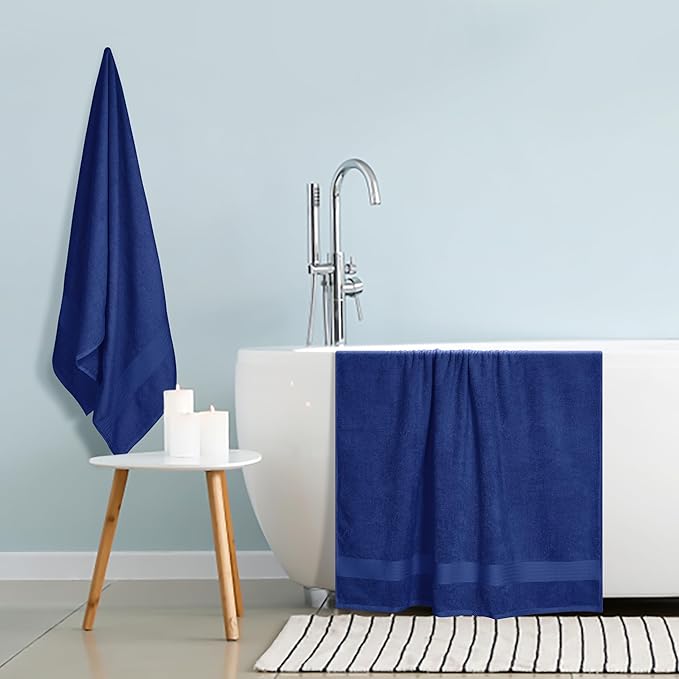 GLAMBURG Premium Cotton Oversized 2 Pack Bath Sheet 35x70-100% Pure Cotton - Ideal for Everyday use - Ultra Soft & Highly Absorbent - Machine Washable - Navy
