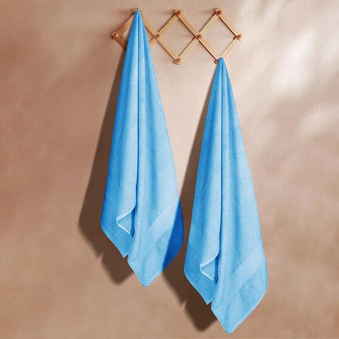 GLAMBURG Premium Cotton Oversized 2 Pack Bath Sheet 35x70-100% Pure Cotton - Ideal for Everyday use - Ultra Soft & Highly Absorbent - Machine Washable - Sky Blue