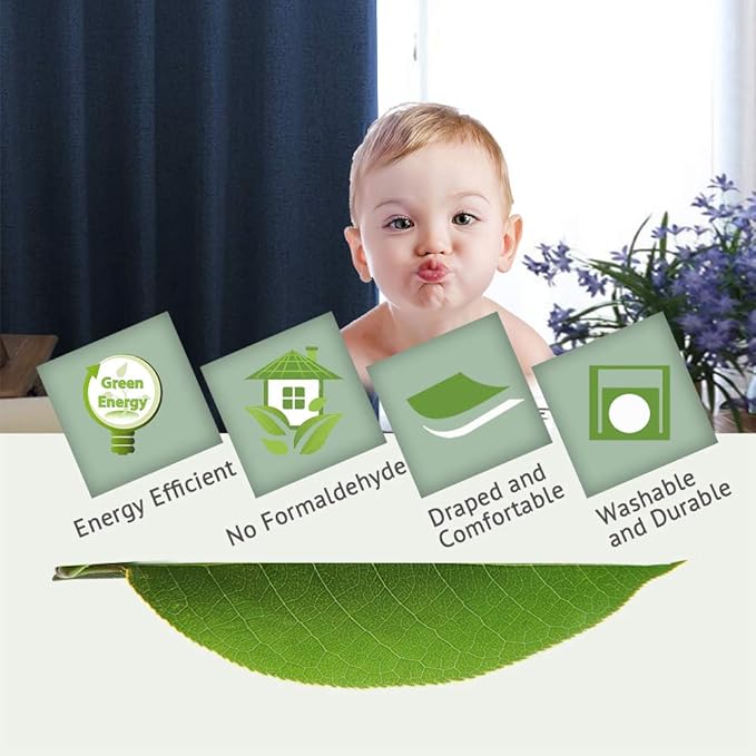 - INNOVATED MATERIAL: These casual linen draperies are crafted from rich linen like fabric (100% polyester), added with 100% blackout lining, draped and soft, block the wind and reduce the noise. Lab test shows these awesome curtain panels are environmental and vinyl free