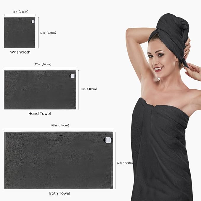 - Material: The towel set is made of 100% pure cotton, lightweight, super absorbent and soft—perfect for everyday use in the bathroom, shower, gym, beach, pool, spa, hotel