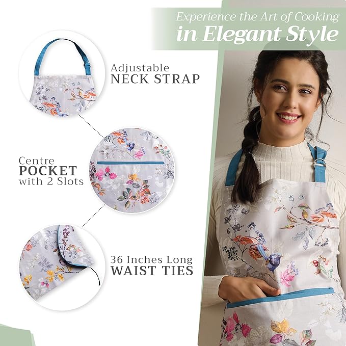 - Unique Design: This French apron features vibrant watercolor patterns inspired by European motifs. The artistic details and soft cotton fabric make it a cute apron choice for cooking, serving, or dressing up as a charming kitchen maid.