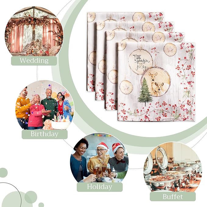 - Package Includes: Set of 4 cloth napkins, each 20"x20" in size. These soft square napkins add a cozy charm to any table setting. Perfect for everyday or special occasions. Crafted from 100% cotton, our products are Designed in Europe and Made in India.