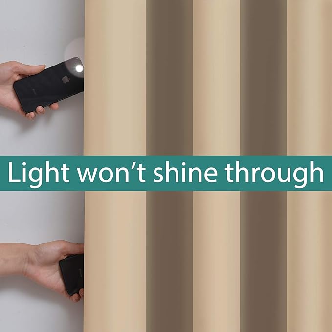 Yakamok 100% Blackout Curtains with Black Lined Thermal Insulated Light Blocking Curtains Heat Blocking Drapes for Bedroom(52Wx96L, Beige, 2 Panels)
