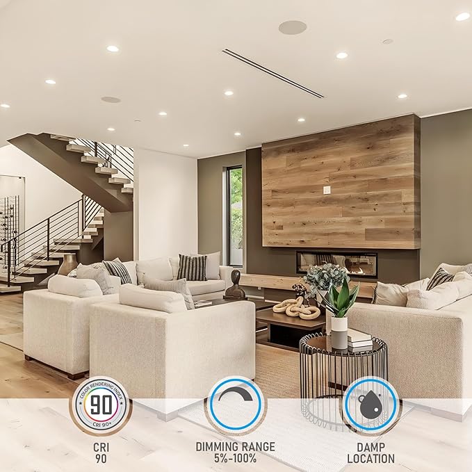 - CRI90 & Dimmable: The 4 inch slim recessed lighting not only offers an dimming range from a cozy 5% to vibrant 100%, but also incorporates a high CRI90. These lights ensure that your space is illuminated with true and vivid colors, enhancing the overall ambiance