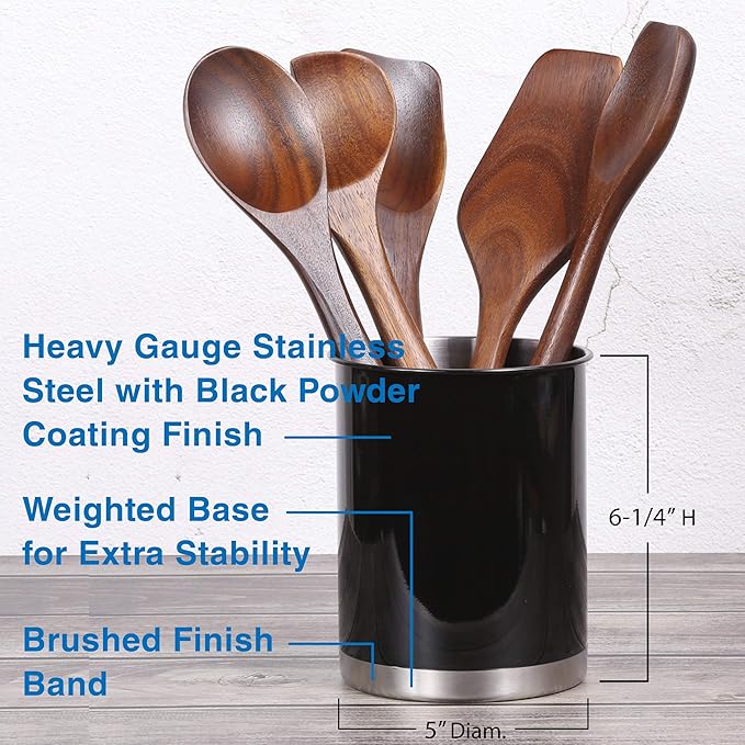 - Heavy-Duty Stainless Steel Construction: Crafted from thick, premium stainless steel, this utensil holder offers exceptional rust resistance and durability. It cleans easily with a damp cloth or a quick rinse under running water for simple upkeep