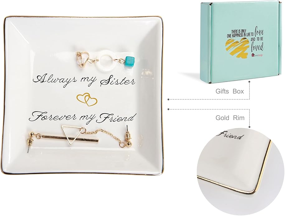 HOME SMILE Ceramic Ring Dish Jewelry Tray for Mom Sister Friends
