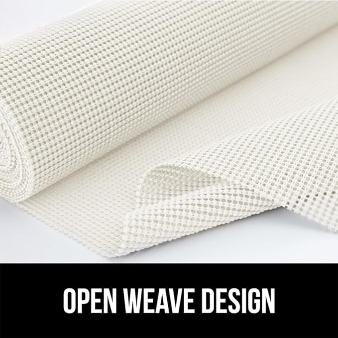 GORILLA GRIP powerGRIP Drawer Shelf and Cabinet Liner, Thick Strong Hold, Non-Adhesive Liners Protect Kitchen Cabinets and Cupboard, Bathroom Drawers, Easy Install, Breathable Mat, 17.5" x20', White