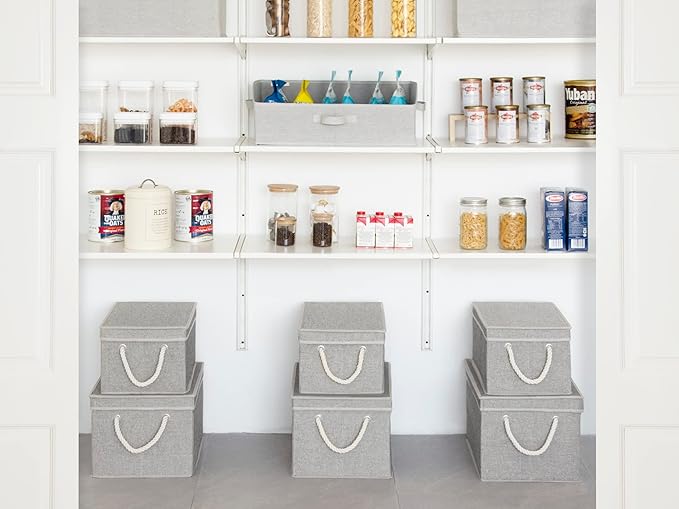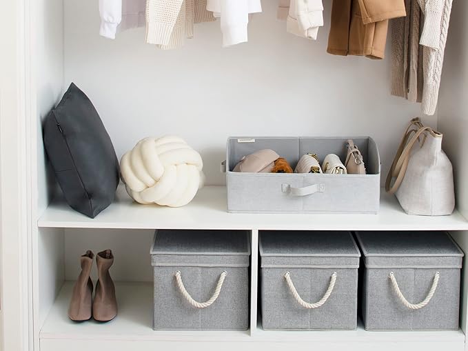 StorageWorks Storage Bins with Lids, Decorative Storage Boxes with Lid and Soft Rope Handles, Foldable Storage Baskets for Closet, Shelves, Stackable, 3-Pack, Gray, Jumbo