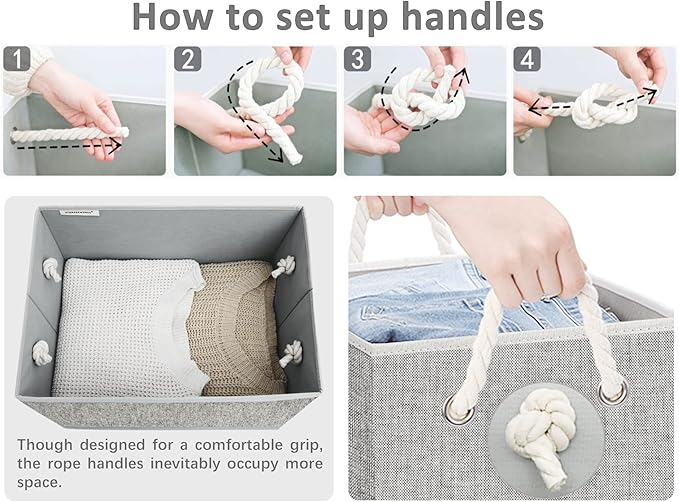 - Closet baskets feature two soft rope handles for comfortable grasping and easy carrying.