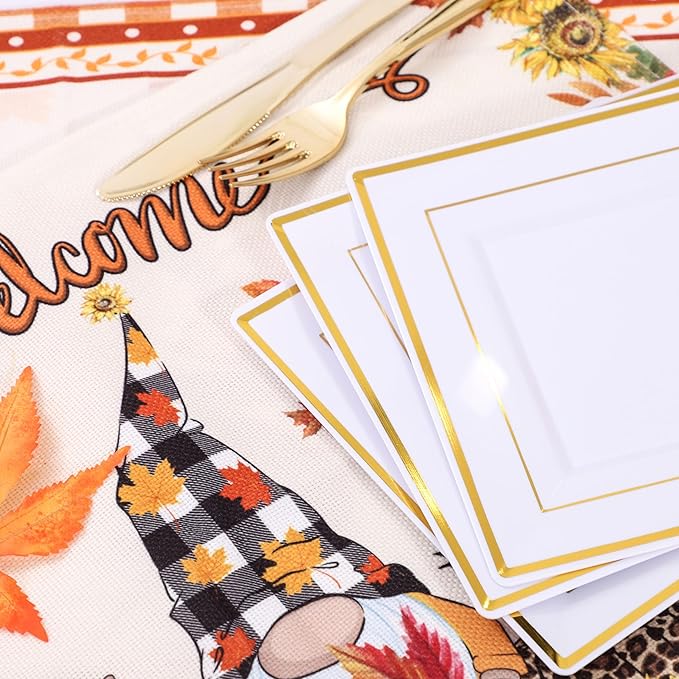 - GREAT FOR ANY OCCASION: Our gold plastic plates disposable and plastic silverware are great forThanksgiving, Easter, Mother’s day, anniversary, graduation, baby shower, wedding, birthday party, banquet dinner, family reunion and other special occasions.